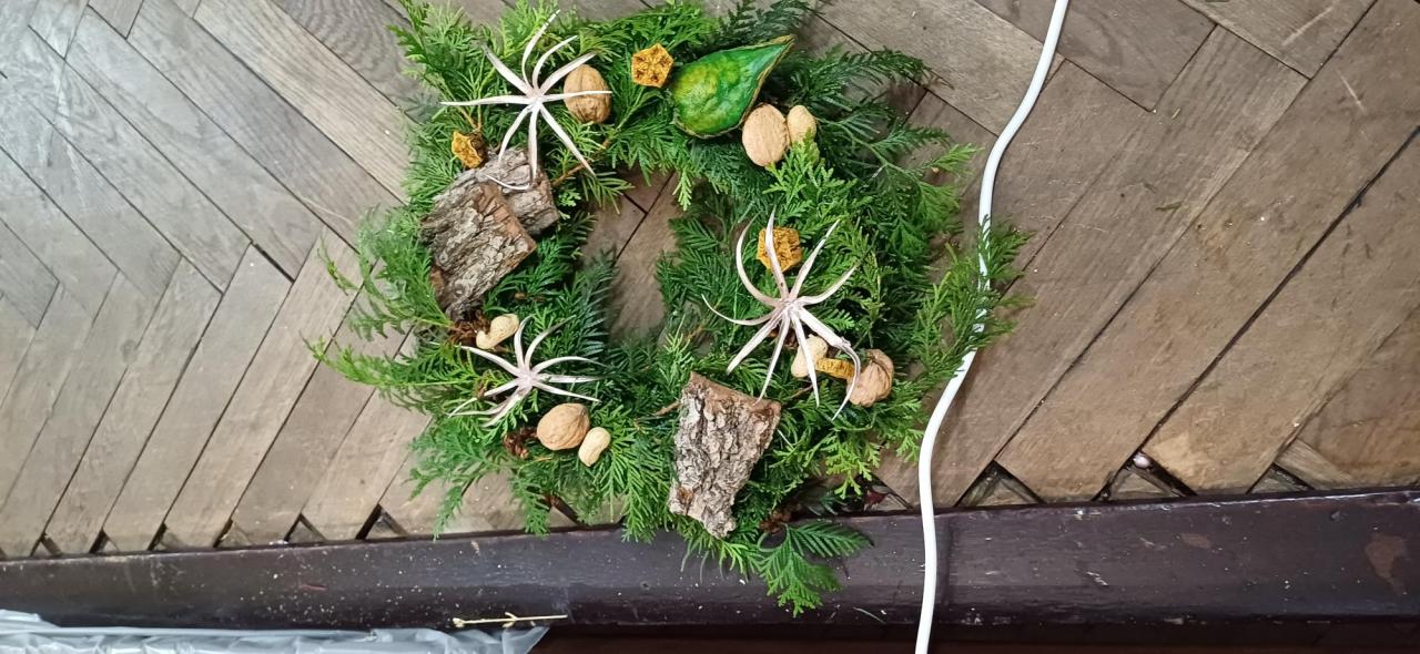 Materiál na tvorenie, čečinu, prírodný materiál to všetko zabezpečil Obecný úrad. Každý kto tvoril bol s výsledkom svojej práce spokojný a odnášal si domov vlastnou rukou vytvorený adventný veniec, na ktorom už v túto nedeľu zapálil prvú adventnú sviečku.
