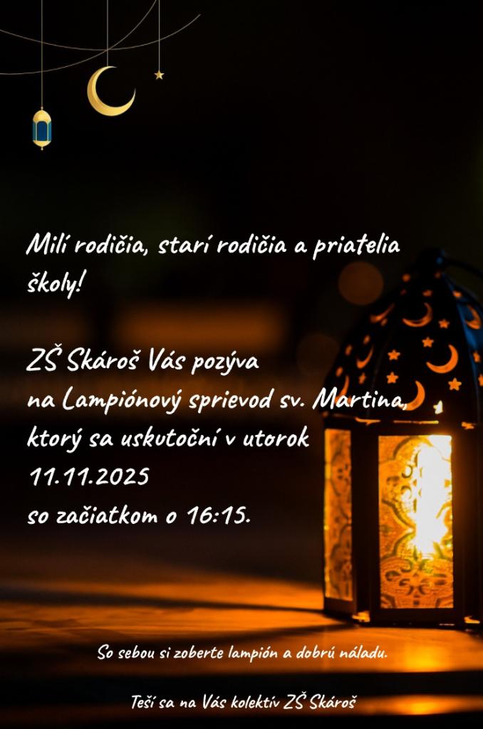 Základná škola Skároš, Vás pozýva na Lampiónový sprievod sv. Martina, ktorý sa uskutoční v utorok 11.11.2025 so začiatkom o 16.15 hod. na školskom dvore.